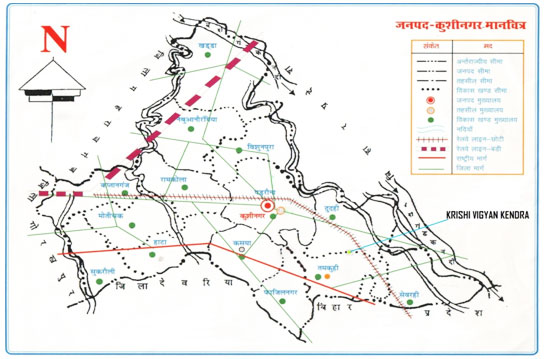 The district is divided into 14 blocks with 1571 villages. The brief socio-economic and technological profile of the district is given in Table 1. The district is primarily agrarian with 77 per cent of area under cultivation. The district falls under the middle Gangetic (North – East) plains having alluvial soil. The net area sown is 233166 hectares with 1.67 lakh hectares area under irrigation. More than 91 per cent of the area is owned by small and marginal farmers (Table 1).
